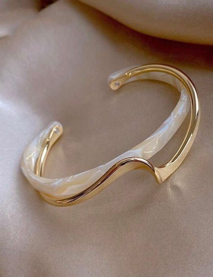 Our Luna Flow bracelet is a refined gold cuff with a soft, wavy shape that echoes the rhythm of the sea and the whisper of moonlight on water. The open ends give it an airy, timeless look – perfect to wear on its own or stacked with your favorite pieces.